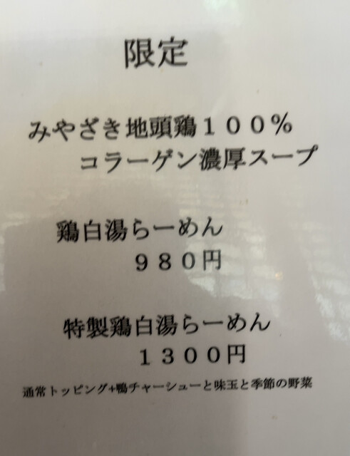 特製鶏白湯ラーメン1300円