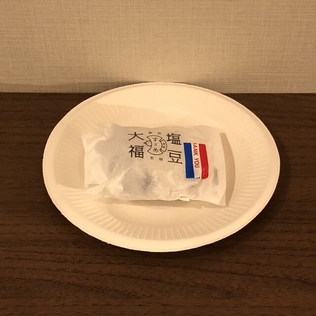 最初1個だけ購入したのですが、ホテルで食べた際に、帰路でもう1個購入することを即決したくらいには、好みど真ん中の塩豆大福でした。今まで頂いた中でも1、2を争うくらいストライクでした。