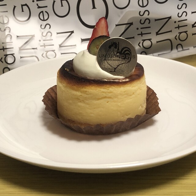 なめらかで柔らかい口当たりの生クリームを冠する、これまたなめらかでとろけるふわふわ口溶けのチーズケーキです。