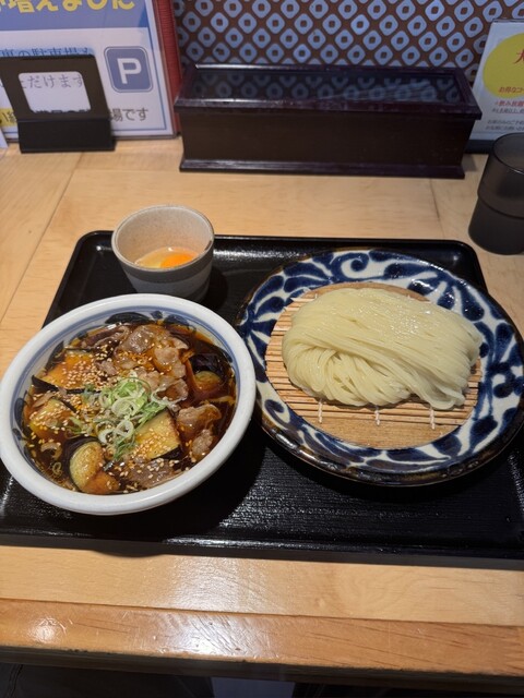 肉とナスのつけ麺食べてきました。