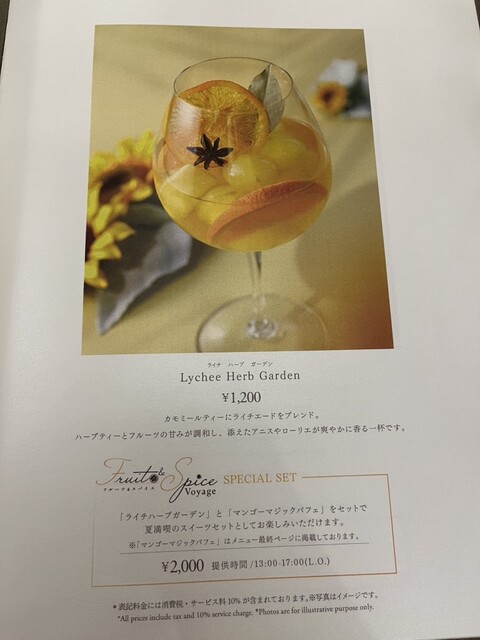 ハーブティーとフルーツ、これもスパイスが効いています。