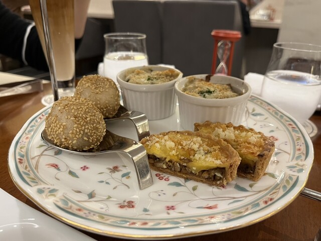 さつま芋のブランマンジェ/本日の鮮魚のマリネと牛蒡のピクルス/さつま芋と栗のケーク・サレ