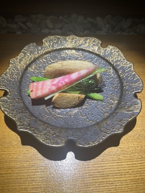野菜の本来持つ特徴を活かすために火入れの入れ方、切り方など全てにこだわりがあり、調味料に甘みがないのに野菜の甘味が存分に際立った一品です。一番難しい料理に感じました。ただ技が光った最高の野菜炒めでした。