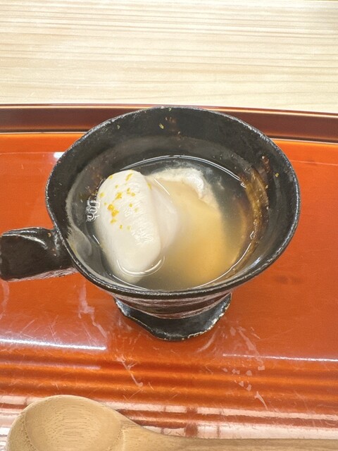上品な味わいでメヌケの濃い旨みと甘味が味噌と合い、山菜の苦みがよくあう。筍も甘みもあり美味しかった。