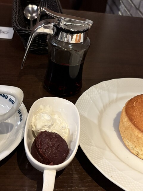 パンケーキにあずきとホイップをのせて、シロップをたっぷりかけて満面の笑みで(多分)いただきました。