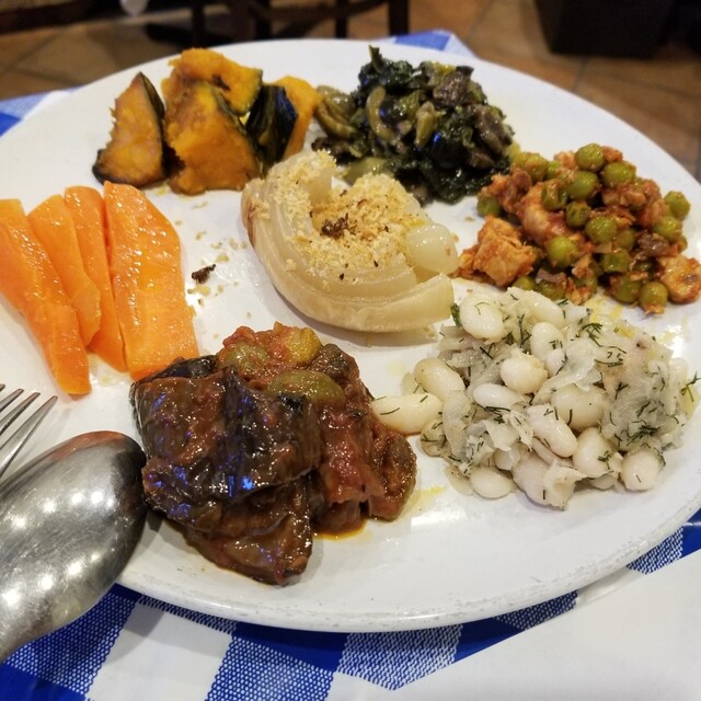 2名でもかなりの量があった前菜の盛り合わせはどの品も野菜や豆類がたっぷりと使われており食欲が進みました。お酒のおつまみにも最適でしょうね。