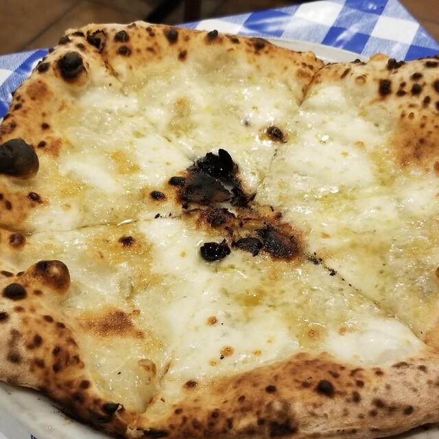 2枚目はトマトソース抜きのクアトロフロマッジョ。日本人の嗅覚に合わせたのかあまり青カビ系のなんとも言えない味は控えめでした。