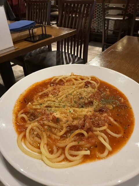 もちもちの生パスタと味の濃いトマトソースが最高!