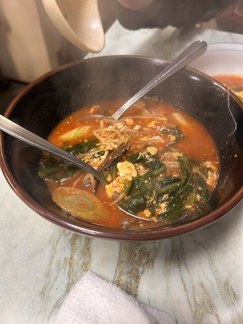 キムチもたくさんきまして、半分残してたらプラスαのキムチと共に持ち帰りさせてくださいました!