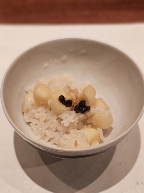 コースの後半にかけてのたたみかけ(ご飯8杯おかわりしました)、デザートがメロンを串に差してカラメルを上からまぶしてバーナーで炙るなど最後まで美味しかったです。