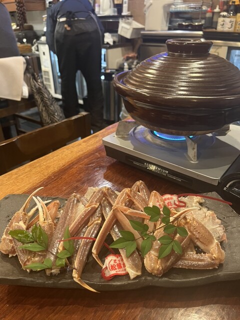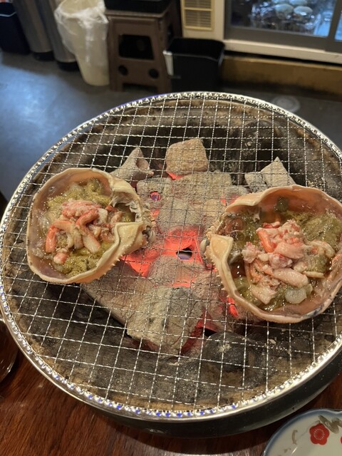 炭火でカニの甲羅に入れたカニ身は熱々が出てきます。お店の方が全て焼いてくださいます。