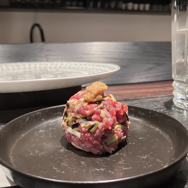 ●大トロの漬け 炭火炙り コチュジャンと茎ワサビのソース