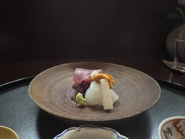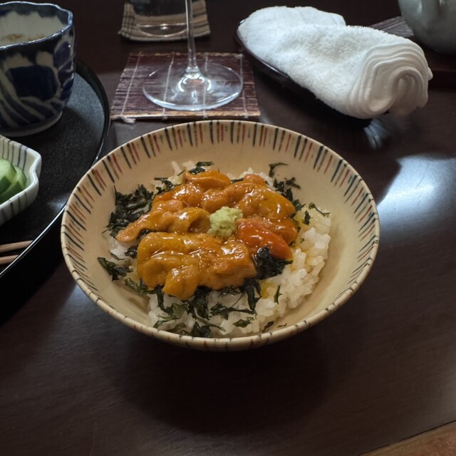 薄味の寒天寄せをお出汁と雲丹をソースにしていただくようなイメージ。