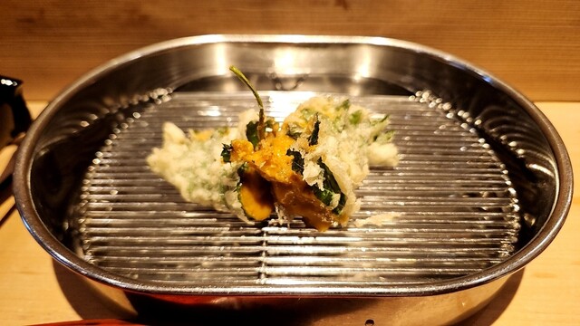 雲丹の大葉巻きから