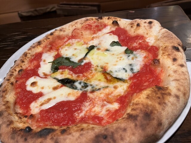 マルゲリータはイタリアのトマトの酸味とモッツァレラのミルクの優しい甘味がバランスよくバジルは食べやすいように火を通しているのが印象的でした。