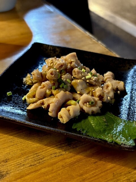 まずお通しが泡醤油付きのお刺身なのが嬉しい。