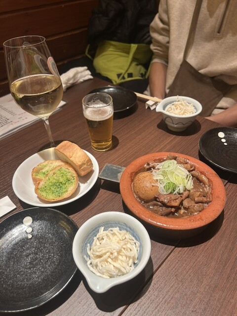 元フレンチ出身のため、和と洋のバランスに感動しました。煮込みも赤ワインで煮込んでいるとのことです。ガーリックトーストと煮込みとワインのコンビネーションも最高、雰囲気も◎