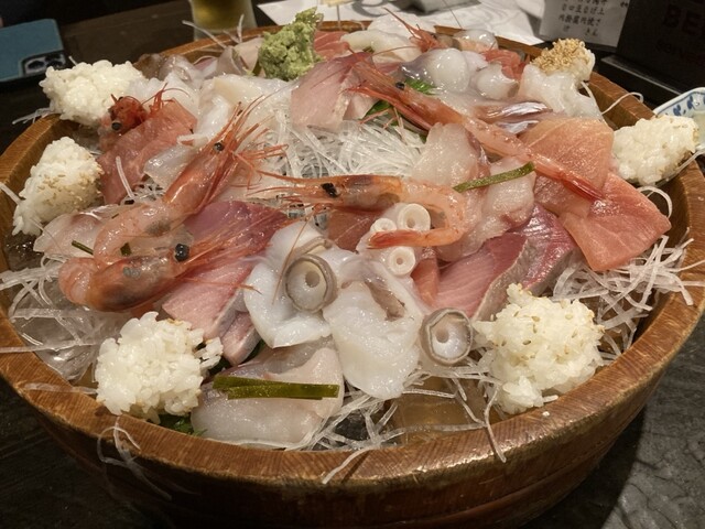 名物の桶盛りを頼みましたが、その迫力に圧倒されました!ボリュームはもちろんですが、鮮度も抜群でいずれも最高のお刺身でした✨