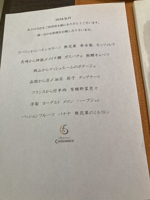 なんとクロワサンスさんはその日のメニューだけでなく、テーブルごとにメニューを変えられているそう