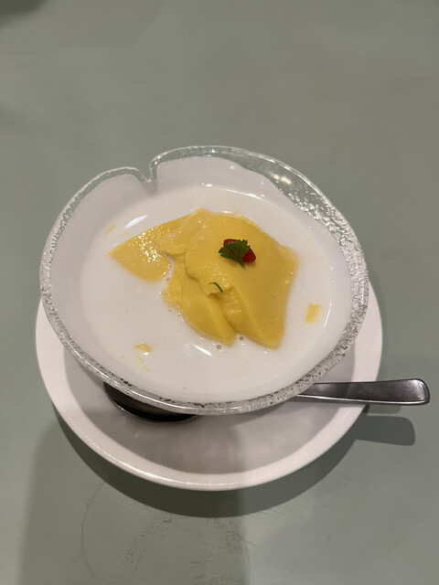 最後にデザートの杏仁豆腐(レモンを絞っていただく)、マンゴープリンも他では味わったことのない味で最高でした。