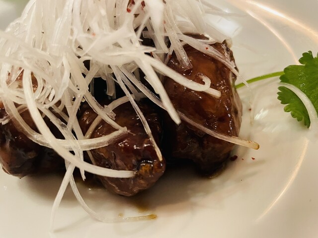 ○黒酢の酢豚 ※パクチー添えてあります