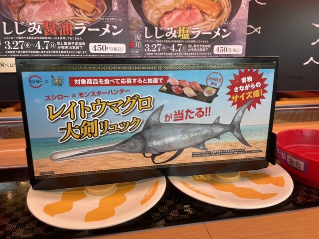 MHP2G(2008/3/27発売)から始めたので最古参とは言えないがMHP3(2010/12/1発売)が親子共々まだ現役で、MHW(2018/1/26発売)は勲章コンプ。MHサンブレイク(PS版は2023/4/28発売)もエンドコンテンツやり尽くしなお遊んでいるレベルで好きなのでこのコラボ開始した最初の土曜日にオープンと同時にスシローに突撃。