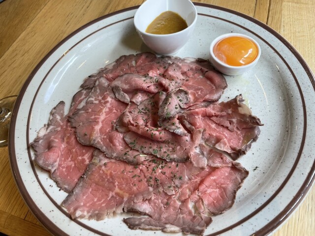 ローストビーフとビーフシチューにしたんだけど、、、ポークカツの方が美味しい。。。いや、これも美味しいよ。。。