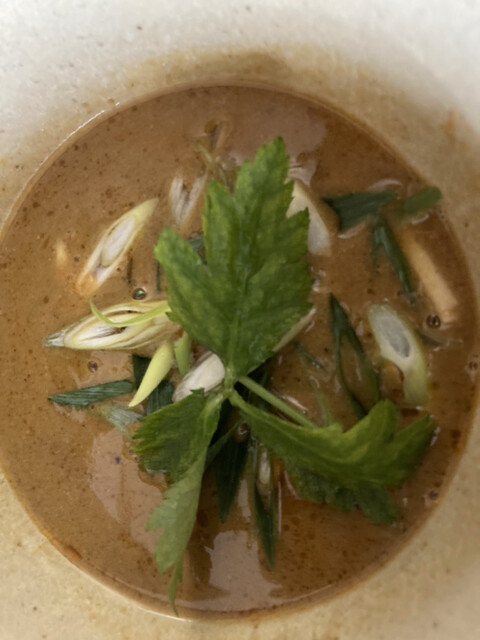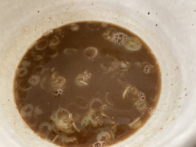 後入れの説明を受けた利尻昆布を、つけ汁へ。先に頂いていた際には、塩味が若干弱く感じていましたが、利尻昆布を入れてベストとなりました。その後も夢中で啜り続けて完食完飲。大変美味しく、楽しく時間を過ごせました。