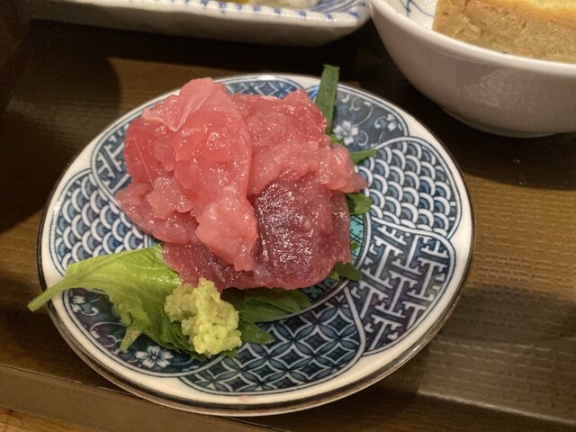 人事異動で久しぶりの顔ぶれもあり、積もる話に美味いアテ。お通しの和布蕪に、鰯のつみれ汁からスタート。つみれ汁の柔らかで旨味の詰まった味わいに日本酒がマッチ。お造りには、なかなか珍しい鮪の喉肉や東京湾で採れたての太刀魚などが盛り沢山。シグニチャーのアジフライはフワフワ食感に自家製タルタルのマリアージュが素晴らしく、ボリューム満点のマグロ鎌をつつきながら笑い話もつきつまり、鉄火巻きでフィニッシュ!ご馳走さまでした♪