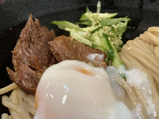 こんな日にはスタミナつけようと、限定の牛すじde鰻つけ麺肉増しにオススメの国産とろろ飯、ハートランドをお願いしました!