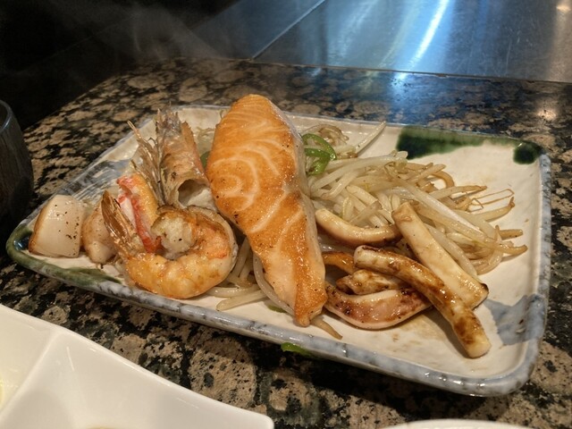 母の磯焼きも少し頂きましたが、いずれも絶妙な焼き加減で柔らかジューシー!なかでも烏賊の柔らかさは抜群で、サーモンと自家製タルタルソースのマリアージュに感動でした。ステーキは言わずもがな。柔らかく肉汁が溢れ、ソースは3種。一押しは醤油ベースでバルサミコの効いたソースで、酸味の効きが口に楽しいものでした♪焼き野菜も良い箸休めに、あっという間に完食!大変ご馳走さまでした♪