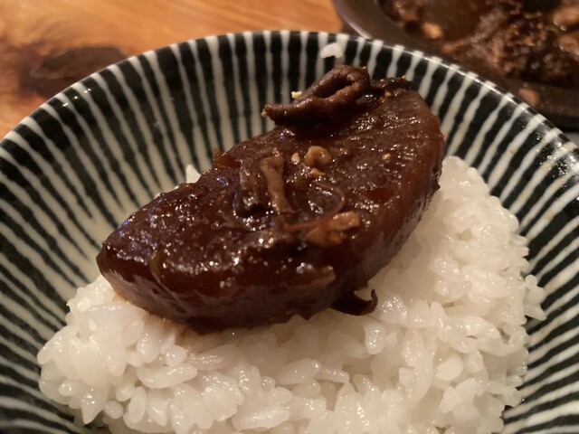 今日は、和牛黒煮込みに煮卵TP、アジフライの③セットをおねがい。威勢の良い店主がぶん回し10分弱で配膳。グツグツ黒煮込みを目の前に、早速いただきます!