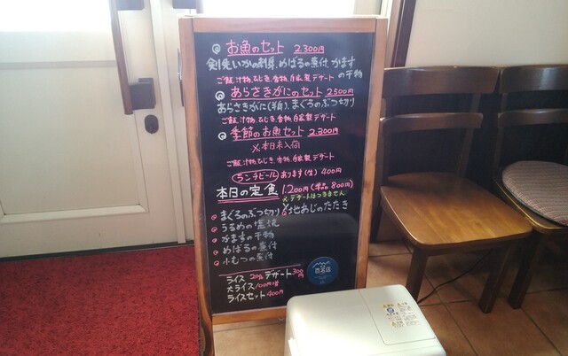 朝ご飯をまるよし食堂さんでいただいたのですが、今日はまだまだ魚の気分!ここぞとばかり買い込んだパンやみかん、大根も楽しみなのですが、お魚も見に行きましょう。荒崎の磯へ向かって進む途中、長井漁港脇の「長井水産さん」こちらを冷やかして、気がついたら百名店になっていたお魚の定食屋さん「あらさき亭さん」土曜日で12/24でしたから心配して予約の電話を入れたのですが、『うちはクリスマスとか関係ないから大丈夫ですよ!笑』だって………海沿いのカーブを♪ぼくの白い電車~曲がれば~年も暮れる♬なんて鼻歌交じりで海っペりを進みます。海の向こうに富士山がくっきり!お店に到着して、南側の駐車スペースに車を停めます。店内へ入ると先客さん一組でした。テーブル席へ案内されて、何時もの「お魚セット」と「季節のお魚セット」にしようと思ったら、この日は、季節のお魚が仕入れ無し、代わりに何時もは幻の「あらさきがにセット」が有りました。このあらさきがには、水深500~1,100mの深海蟹(タラバガニの仲間)正式名イバラガニモドキといい、駿河湾ではミルクガニとも呼ばれる希少な蟹です。ツレの大好物!もちろんお願いします。そしてお魚セットは、剣先イカのお刺身とメバルの煮付け、カマスの干物にご飯と味噌汁、漬け物と絶品ヒジキの煮物がセットされます。