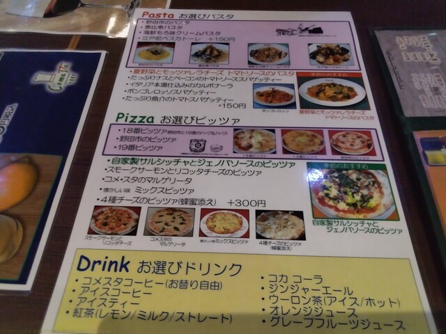 Sto bene, grazie.[スト(私)元気ありがとう]って答えると良いらしいのですが、初めて見たコメスタは、意味も解りませんでした。笑 野田の地で、1992年オープンといいますからもう30年以上続く地産地消をテーマにしたカジュアルイタリアンの名店です。営業時間もわりと遅くLoは21:00です。しかも年中無休。最近は、流山おおたかの森や柏の葉キャンパスのT−rex沿線にも店舗展開されていますね。晩ご飯にパスタが食べたいという娘と共に、国道16号を千葉県へ、(そうは言っても隣町ですけれど.....)こちらから向かうと野田市駅入り口のすぐ先の信号を曲がったところです。ちょっとごちゃごちゃした駐車場は変わらないですね。この日は狙い撃ちの月曜夜ですかららくらく駐車。中央に薪窯を置いた店内も、かなりゆったりと座れます。本日は二人なので「選べるイタリー・ツクセリコース」にしようか? ❲予算少しオーバーですね❳ 「選べるイタリーコース」こちらにしましょう。季節の彩りサラダ・お選びパスタorピッツァ・メイン料理・飲み物のコースです。飲み物はジンジャーエールをお願いしました。(最初に到着)、続いて季節の彩りサラダが来ます。食べていると私セレクトのピッツァ(自家製サルシッチャとジェノバソース)、見た目も綺麗で味も良し。追いかけるように娘セレクトのパスタ(野田市のパスタ)、これはキッコーマンさんの企業城下町野田らしい一品、醤油のもろみのミートソースにタップシ白髪葱....これは唯一無二のお品です。ピッツァ&パスタを食べ終わったのを見計らって、娘セレクトスズキのソテーマントバ風ソースと私の和牛のステーキサルサベルデが到着します。店員さんのオペレーションも取り皿などのサーブも気持ち良く、税込み2,800円のコースとは思えない満足感を感じながらご馳走様でした。