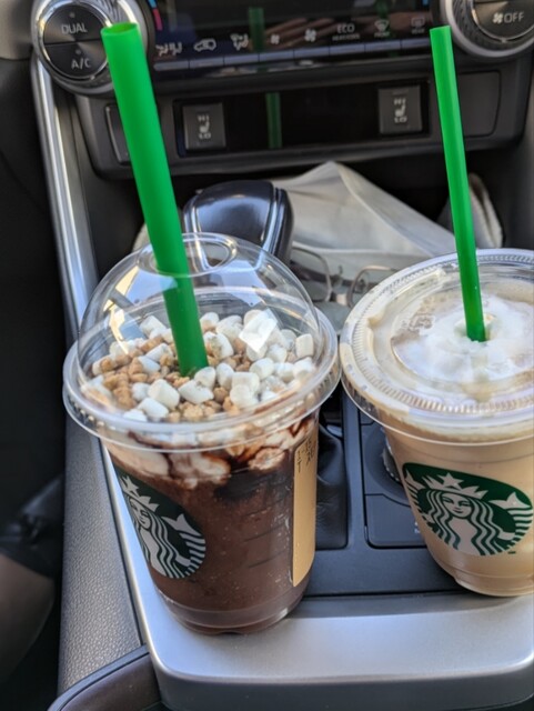 妻はスモアチョコレートフラペチーノ、私はアフォガードフラペチーノを購入しました。