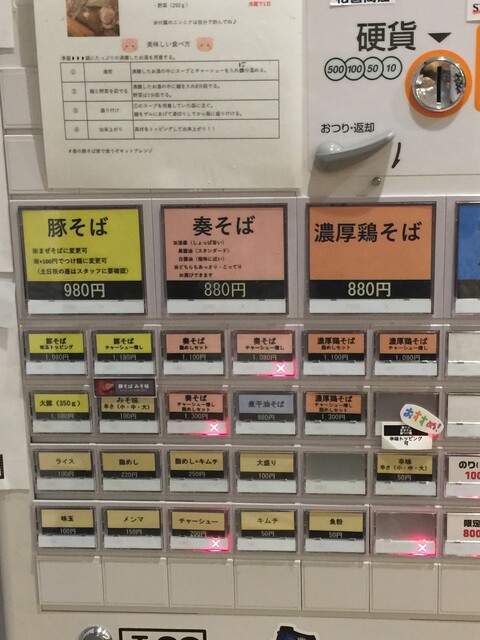 他のSNSやラーメンアプリで奏の全?メニューが¥50円ほど値上がりしたのは知っていましたが、実際に来店して券売機の前に立つと切なさを覚えます(;´Д`)