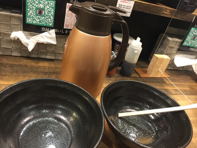 残ったつけ麵のスープを割りスープで飲み干した事デス(≧▽≦)/