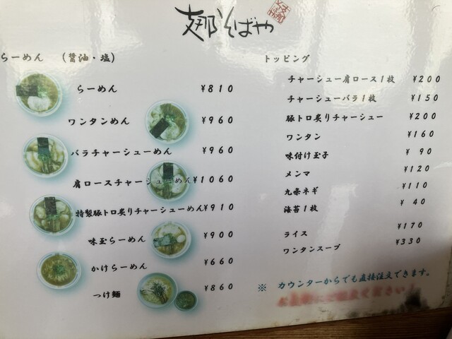 券売機の前に立ち、メニューを選択しなくちゃいけないのですが、小生の後ろには5~10人くらいの待ちのお客がいたのもあり、券売機のメニューは何故か全て「塩系のらーめん」で(この時点で塩と醤油スープの別売日提供を知らなかった)、一番に目に付いたのは券売機のほぼ中央にあったボタン【特製豚トロ炙りチャーシューめん(910円)】を瞬間的にポチり、後になってワンタンめんや味玉らーめん、他に単品のトッピングなどもあったのか~との思いながらの入店デス(^▽^;)/
