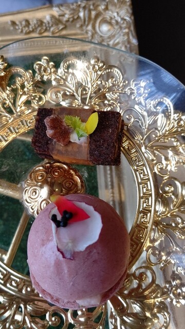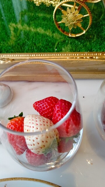様々な苺のデザート、そして塩気のあるセイボリーと選べるティー。美しく飾られた台座への盛り付け。映えるだけでなく形も色もとても可愛い。味も違うので楽しめました。中にピスタチオクリームが入った苺のエクレアが特にお気に入り。お茶は4種類いただきましたが白茶の