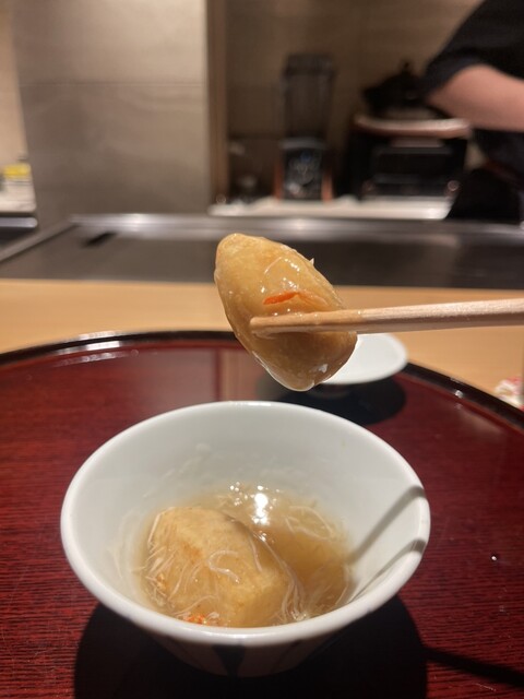 ここで、今回の主役とも言える越ヶ谷・渋谷農場のとうもろこし。鉄板で焼き上げられた粒は甘さが濃密で、スイーツかと思うほど。噛んだ瞬間、「これは…!」と心のどこかで拍手したくなる甘さと香ばしさの共演。正直、この一口でこのコースの評価が8割決まってもいい。