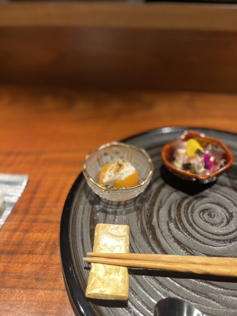 銀座の洗練された雰囲気の中で、和とフレンチが融合したコースを堪能!素材の良さが活かされた繊細な料理ばかりで、一品ごとに驚きと感動の連続