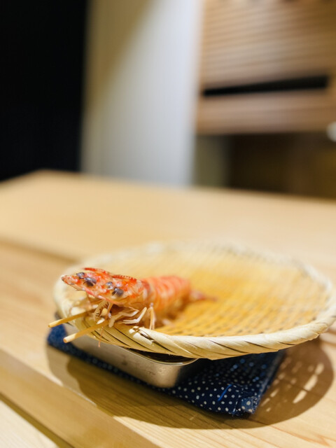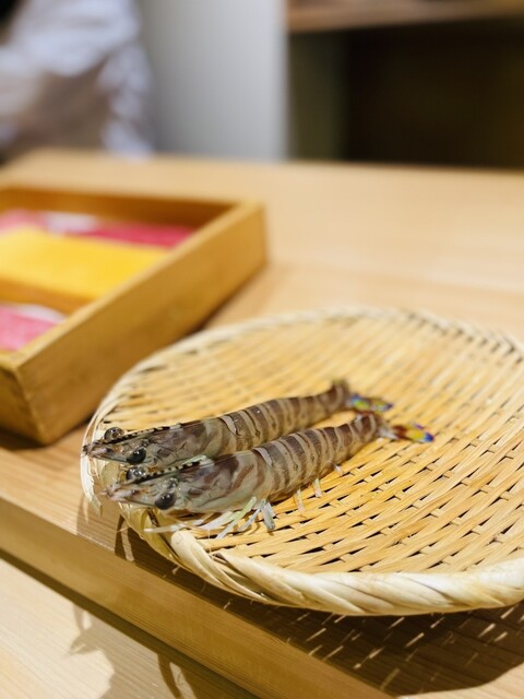 ・ 鹿児島産くるま海老の握り … 身がプリップリ!海老の甘みがしっかり感じられる