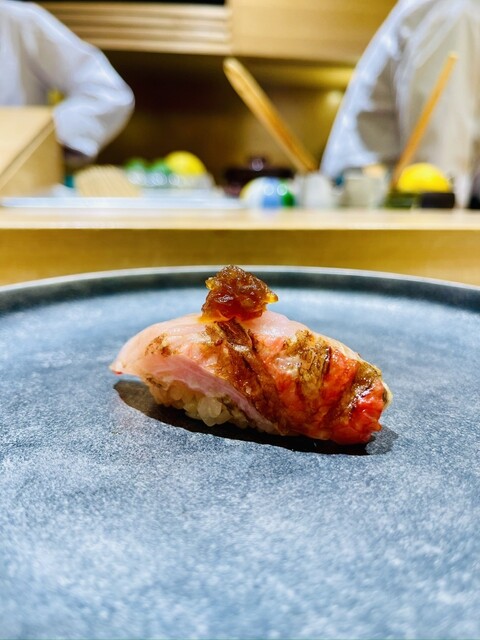 ・ 銚子産金目鯛の握り … バターを使った玉ねぎがアクセントになり、驚きの美味しさ!