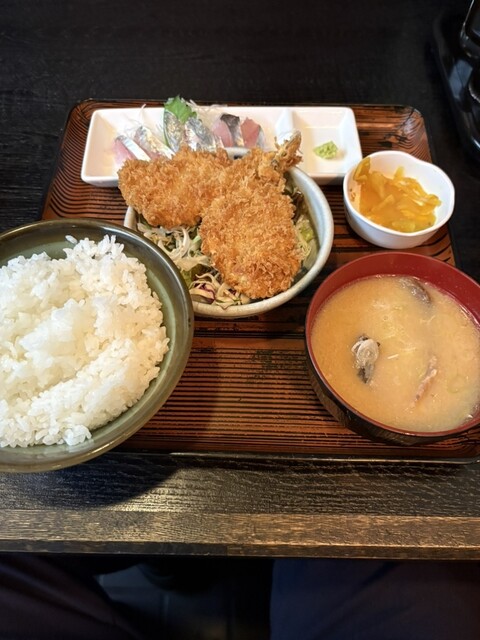 鯵のお刺身とアジフライがセットになったB定食をいただきました。お刺身は鮮度も良く、アジフライも大きくて両方とも美味しかったです!!あら汁も素晴らしかったです!定食の種類はお肉系も含めてたくさんあるので、何度も来たくなるお店ですね。夜の部も気になるお店でーす!