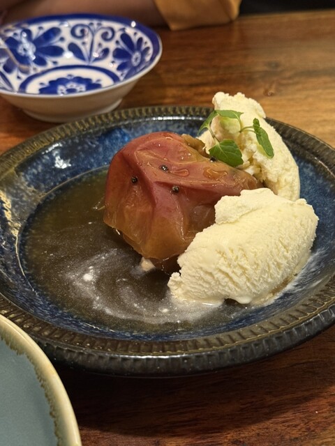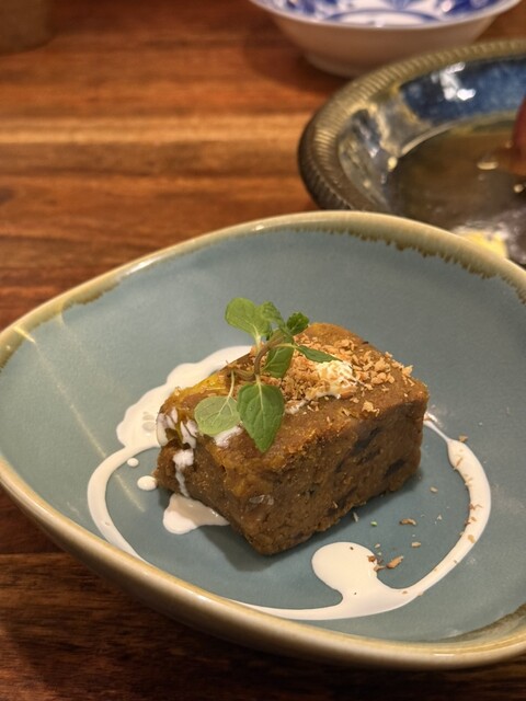 マサラチャイは自分で甘さを足すタイプで、普通にとてもおいしい。カルダモン強め。甘さは珍しい香りの卓上の野生黒蜂蜜で足せて、楽しい。