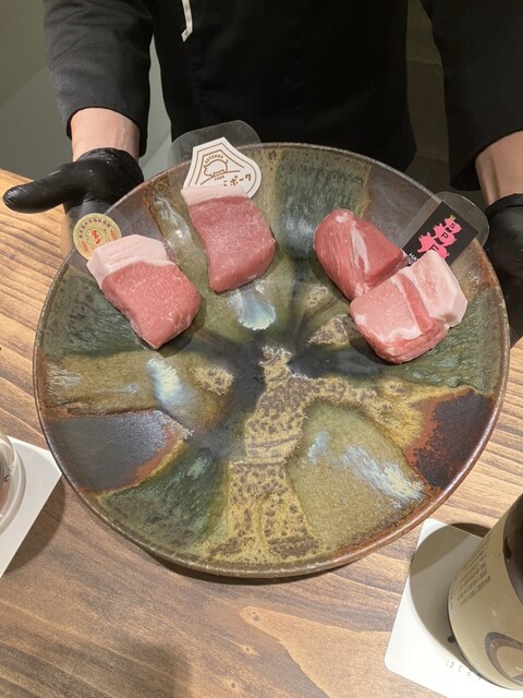 その全てが素晴らしい。前菜は豚のパテドカンパーニュとシャインマスカットの白和え。パテドカンパーニュにはタスマニア産粒マスタードが添えられ、豚の脂とスパイス、マスタードの酸が絶妙のハーモニー。白和えは丁寧に裏漉しされた豆腐にクリームチーズが加わり、マスカットの甘さを引き立てる。サラダには厚めにカットされた8年熟成の生ハムを惜しげもなくトッピング。エビフライはアメリケーヌソースが良く合う。豚カツ四貫は岩中豚、御殿場ポーク、林ポークのロース、ヒレ、リブロース。色合はロゼ、とにかく柔らかく、ジューシー。脂身も上品で塩と合う。今まで食べた全ての豚カツとは根本的に違う。シェフが「始めに低温〇〇°Cで〇〇分、次に中温〇〇°Cで〇〇分、最後にヒーターで〇〇分」と教えてくれ、豚肉のデリケートさに驚く。(企業秘密と思われるので、〇〇は内緒にしておく)