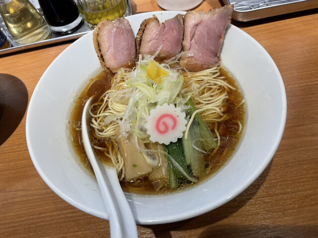 今回は青唐(醤油)をオーダー。ふんわりと鴨だし香るピリリと青唐辛子が効いた、淡麗系のスープはプッツリ系細麺と、の相性GOOD!!厚みのある鴨肉チャーシューは、脂の甘みと凝縮した肉汁が溢れ出す一品。