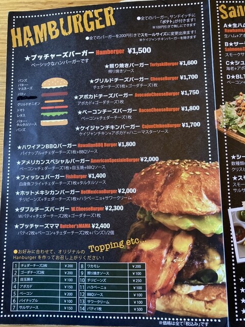●ハワイアンBBQバーガー(ポテトなし)1,800円−100円
