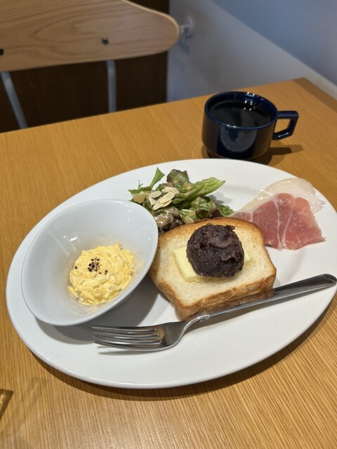 日曜日のモーニングで伺いました。日曜日はモーニング営業のみということもあり朝からとても賑わっていました。あんバタートーストを注文しました。あんこが多いように見えたのですが食べるとちょうど良い。絶妙なバランスでした。生ハムもコーヒーも全部美味しかったです。