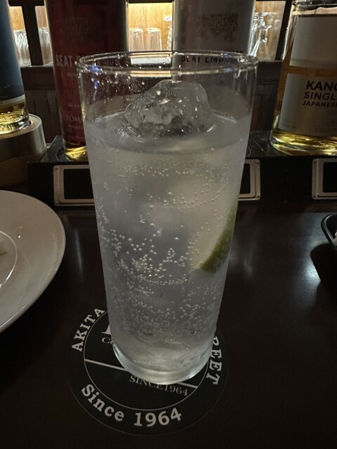 最初はやはり秋田のクラフトジンを飲んでおきたいということで、ナイトトラベラーのジントニックを選択。山本酒造が手がけるこちらのジン、日本酒醸造の際に出る酒粕を使用。日本酒らしいコクや香りを感じられる唯一無二のジンである。勿論ボタニカルもたっぷり使用されているため、ジンらしい複雑味も確とある。